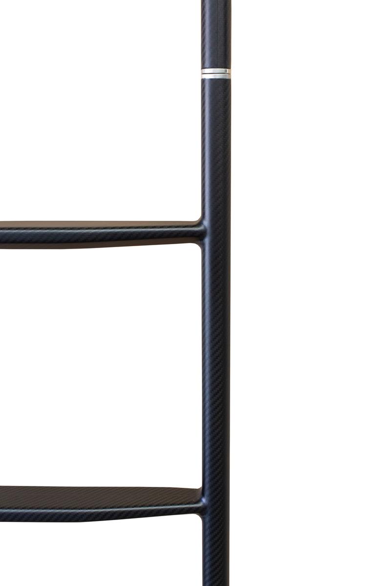 Autoclave cured prepreg carbon fibre swim / boarding ladder with foldable handrail.