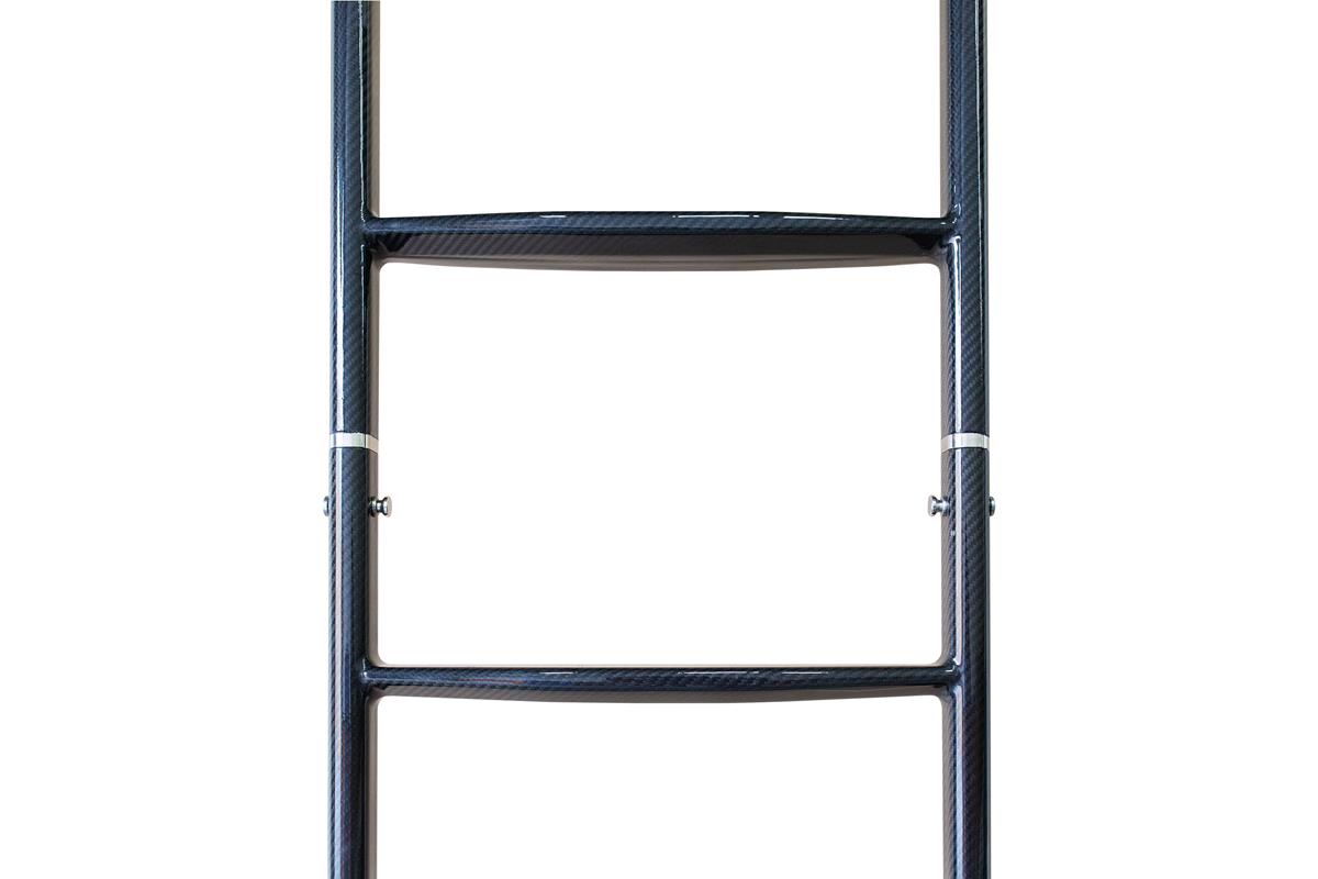 Description: Supplied a 4 step prepreg carbon fibre swim ladder with an additional 3 step extension so that the swim ladder may also be used as a side boarding ladder.